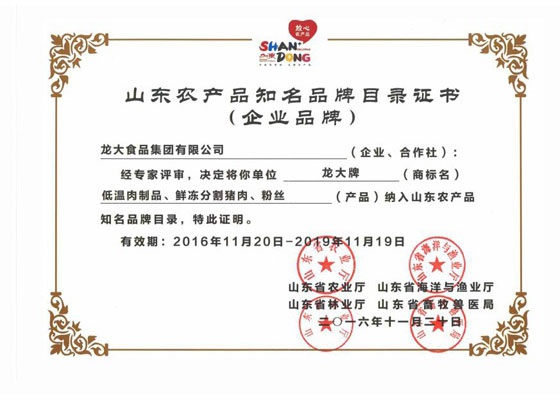 龍大集團(tuán)三產(chǎn)品入選山東農(nóng)產(chǎn)品知名品牌目錄