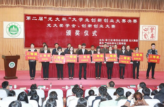 12月11日,山東農(nóng)業(yè)大學(xué)食品科學(xué)與工程專業(yè)學(xué)生董銘、李秀清等35名學(xué)子,在“龍大獎(jiǎng)學(xué)金、創(chuàng)新創(chuàng)業(yè)大賽”頒獎(jiǎng)儀式上領(lǐng)到了龍大食品集團(tuán)有限公司頒發(fā)的獎(jiǎng)學(xué)金,獲得龍大集團(tuán)獎(jiǎng)勵(lì)的還有10個(gè)大學(xué)生創(chuàng)新創(chuàng)業(yè)團(tuán)隊(duì)。